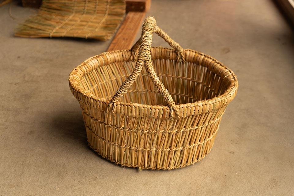 自宅離れにて藁細工教室を開催しています。毎週火曜日に定期的に開催している通常教室と、不定期に開催する2日間通し講座があります。